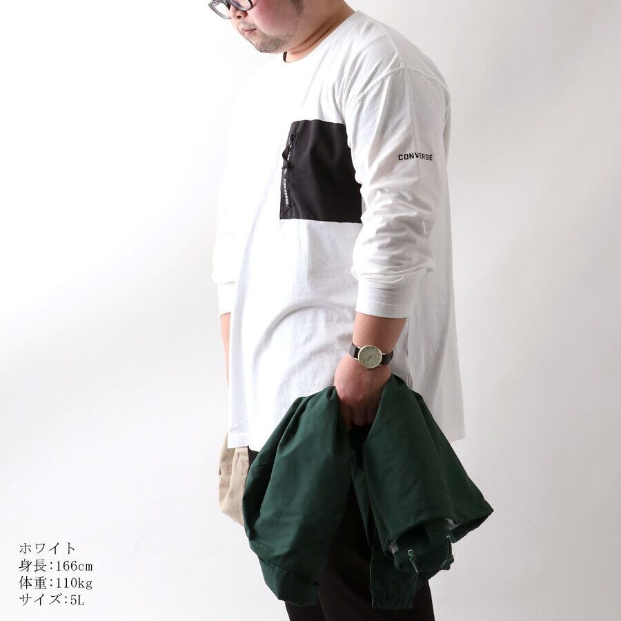 6812280795 全品送料無料 CONVERSE コンバース Tシャツ 大きいサイズ メンズ 秋 無地 長袖 ポケット 付き ロンティー ロンT ロング ティーシャツ ポケットTシャツ ポケットT ポケT おしゃれ オシャレ 大人 ゆったり 大きい 大きめ ファッション メンズファッション 白 黒 綿 2L 3L 4L 5L
