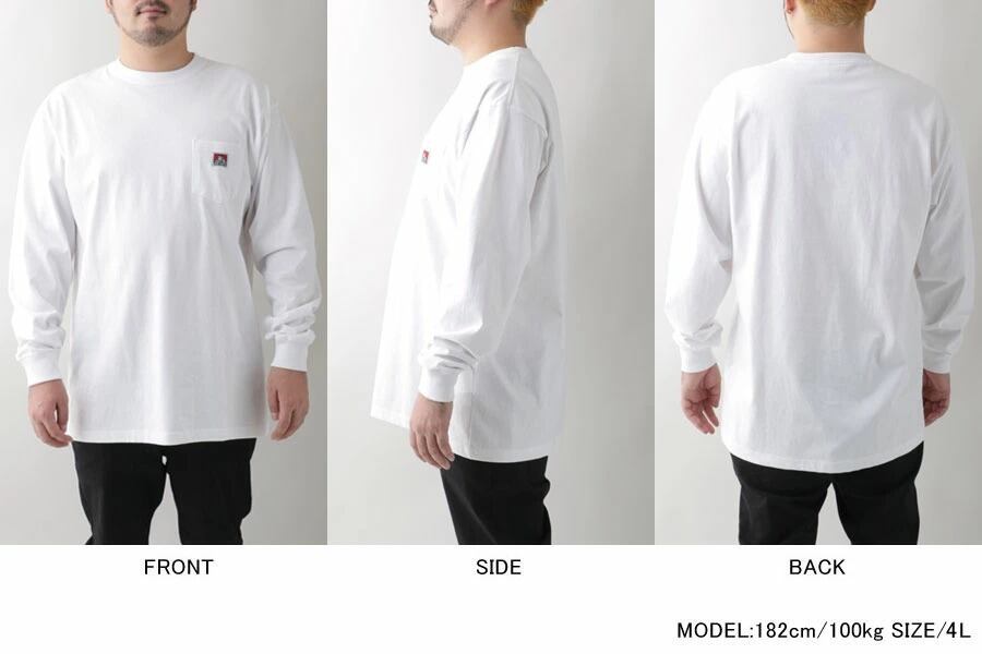 6813090006 全品送料無料 BEN DAVIS ベンデイビス Tシャツ 大きいサイズ メンズ 秋 無地 長袖 ポケット ロンティー ロンT ロング ティーシャツ ポケットTシャツ ポケットT ポケT付き おしゃれ オシャレ 大人 ゆったり 大きい 大きめ ファッション メンズファッション 白 黒 綿 3L 4L