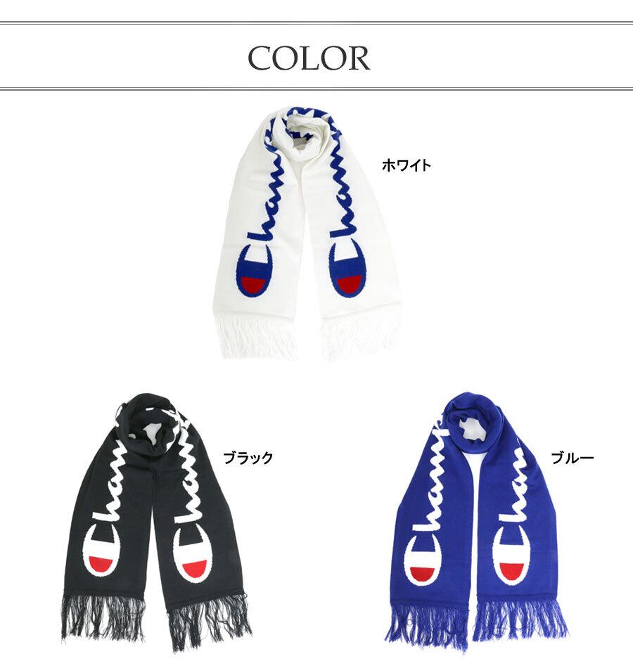 7858040767 全品送料無料 チャンピオン マフラー メンズ 冬 アクリル100% ホワイト ブラック ブルー