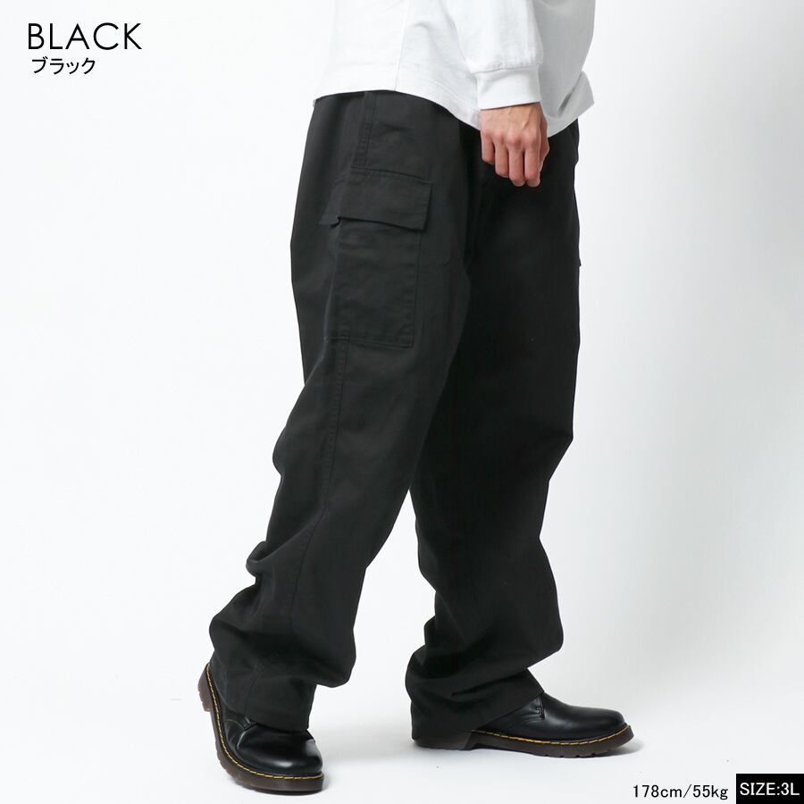 6865040003 カーゴパンツ メンズ ゆったり 秋冬 大きいサイズ 太め アウトドア 作業着 Mru エムアールユー ツイル コットン 綿100 無地 イージーパンツ ワークパンツ ボトム ボトムス ルームウェア 部屋着 30代 40代 50代 春 夏 秋 冬 黒 LL XL 2L 3L 4L 5L